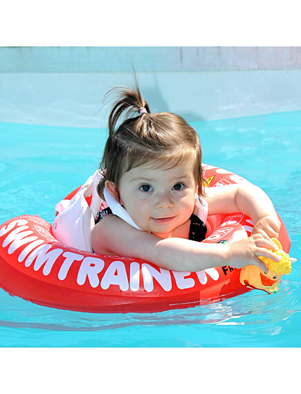 Червеният пояс от серията на Freds - "SWIMTRAINER" е предназначен за деца на възраст от 3 месеца до 4 години и тегло от 6 кг. до 18 кг. Той е съдаден, за да дарява малчуганите с уникалното чувство - да си във водата и плуваш, без да те е страх и то от най-ранна детска възраст! С него децата придобиват нужната самувереност на моряци, които управляват "кораба" съвсем сами!