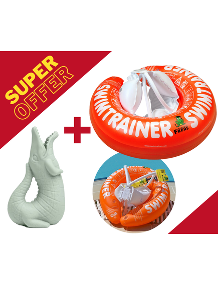 Една страхотна оферта създадена за приятно време във водата - Пояс SWIMTRAINER + Scrunch Рециклируема силконова лейка във формата на крокодил - Sage Green