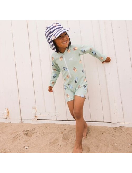 UV целият бански с дълъг ръкав е перфектният избор за малките плувци, които се нуждаят от сигурност и удобство по време на летните приключения. Подходящ за плаж, басейн или игри на слънце, той осигурява отлично покритие и стил, благодарение на материя, която предпазва от слънчевите лъчи.