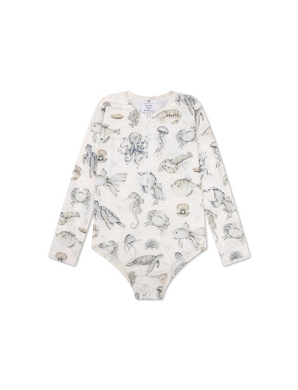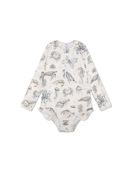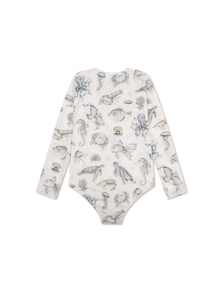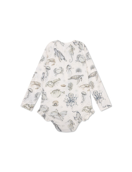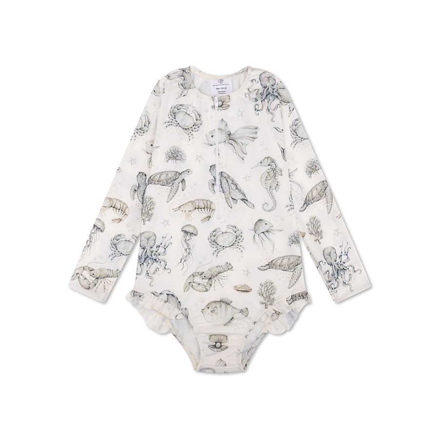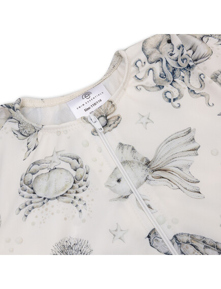 Swim Essentials : Цял бански костюм с ръкав и къдрички от 0 до 8 г. "Girls Sea Life"