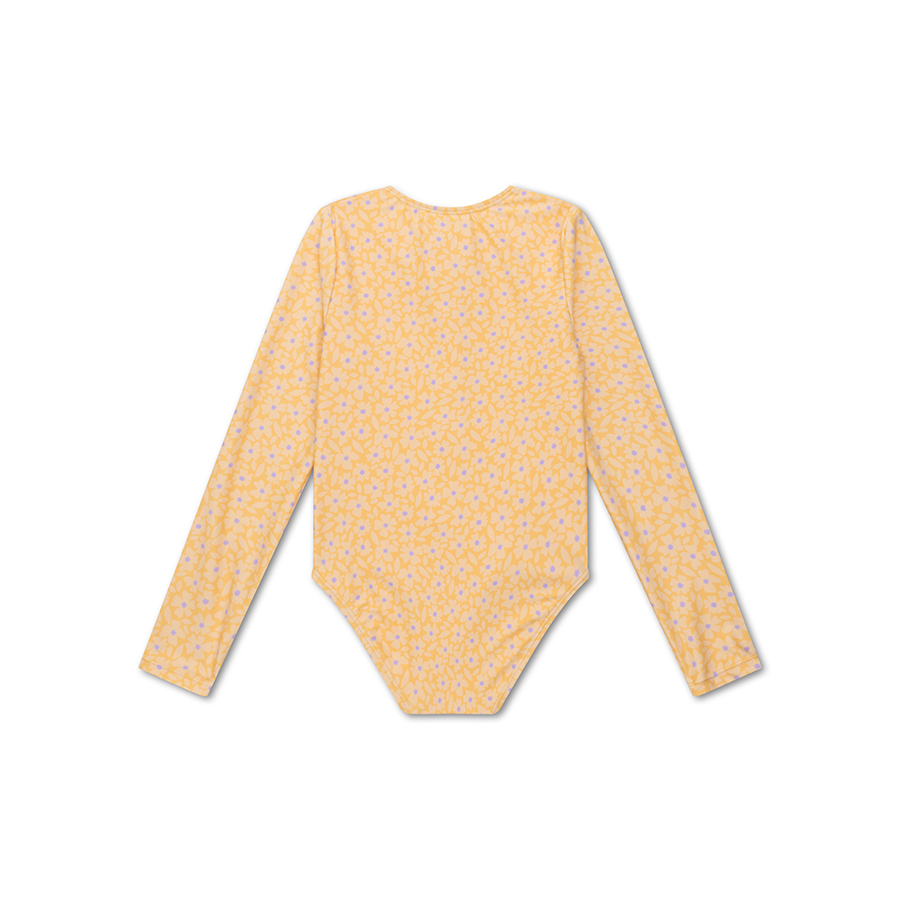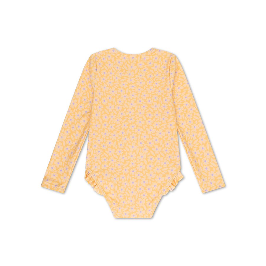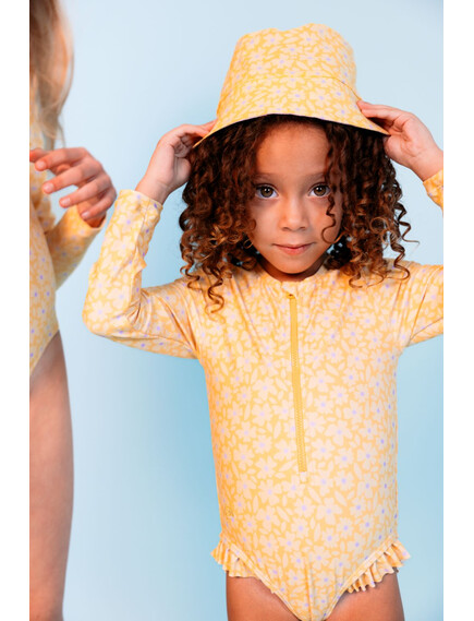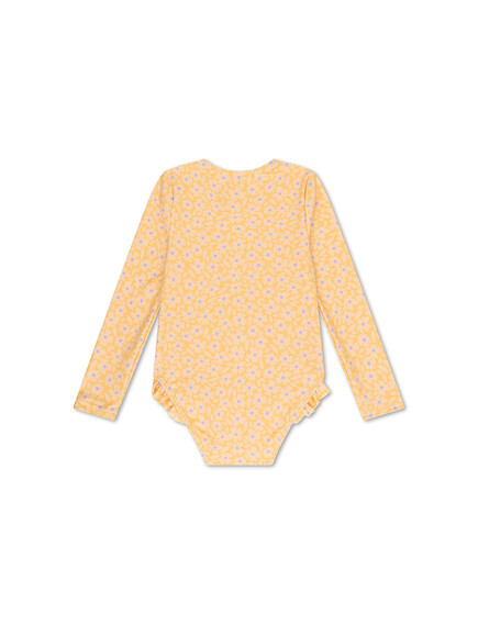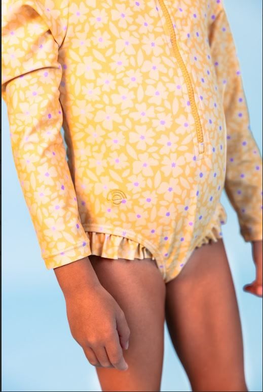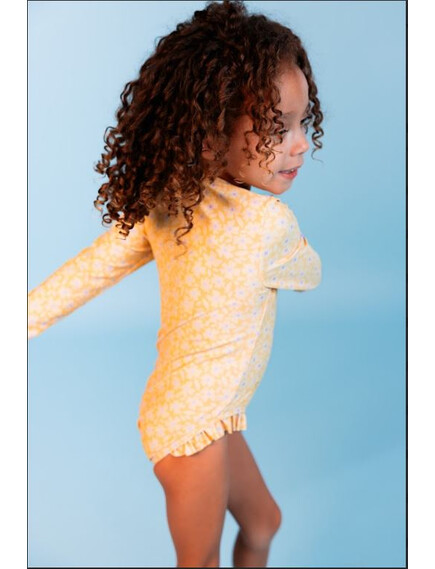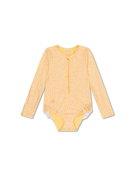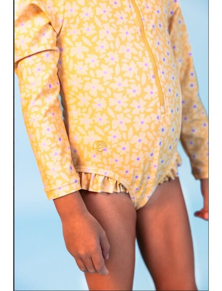 Swim Essentials: Цял бански костюм с ръкав и къдрички от 0 до 8 г. "Yellow Flowers"