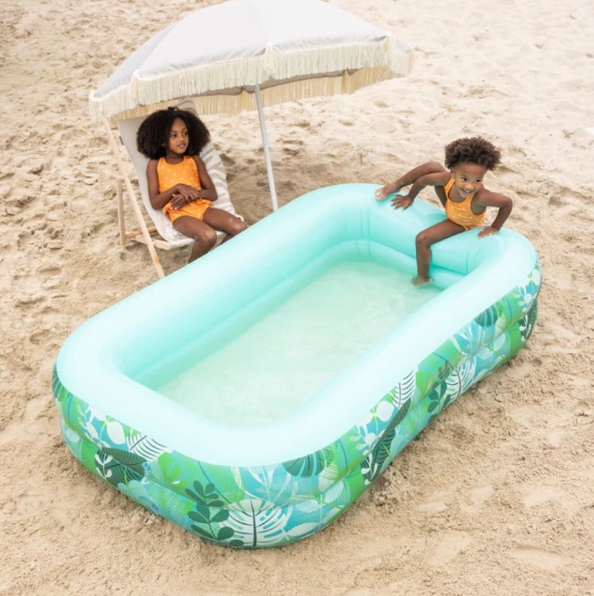 Swim Essentials: Надуваем правоъгълен басейн 211 см. с две въздушни камери за деца от 3 години - "Green Tropical"