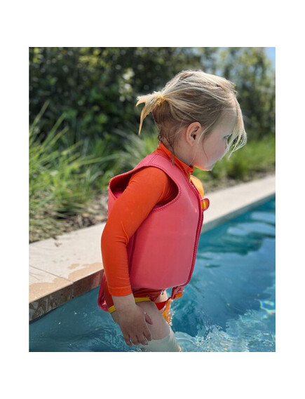 - Идеална за плаж и басейн, тя поддържа детето топло и безопасно в студена вода.