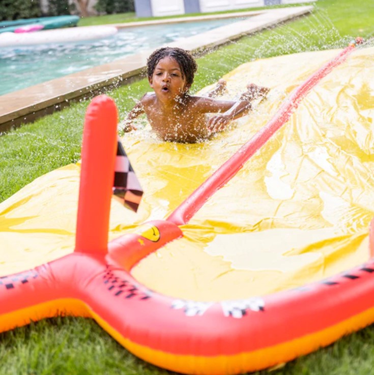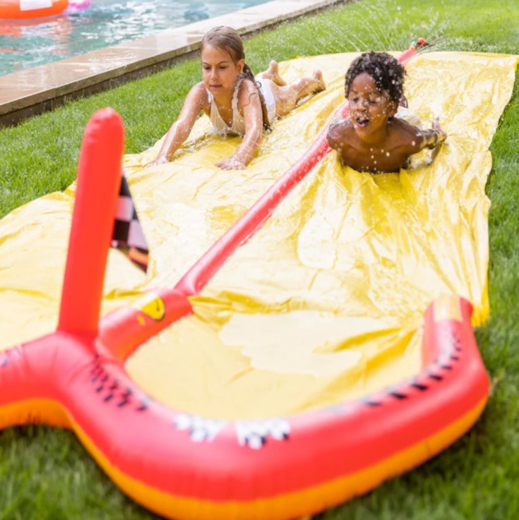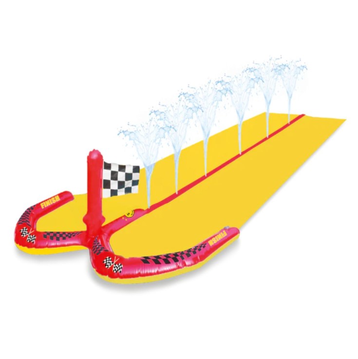 Това е...една различна водна пързалка! Има пръскачки в средата, за да можеш пързалято по вода да е истинско удоволстие.