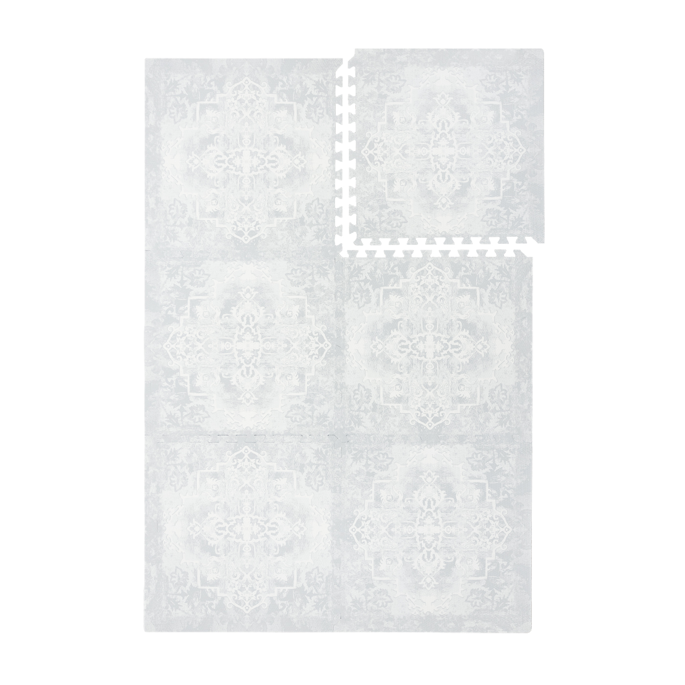 - Пакетът включва 6 парчета 60x60 см. и 12 скоби, за да не изглежда, като пъзел когато се сглоби, а да придава вид на нормален килим.