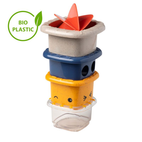 Съдържа: 4 чаши, които се наслагват една върху друга и създават кула