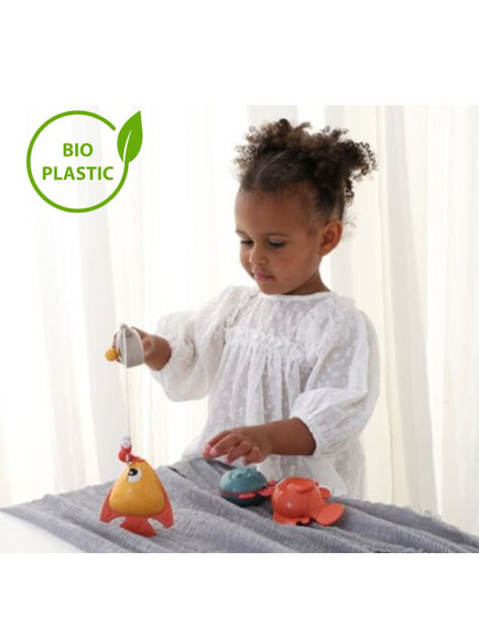 . По време на къпане запознайте бебето си с трите дружелюбни рибки и сладкото малко червейче.