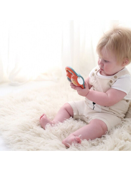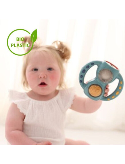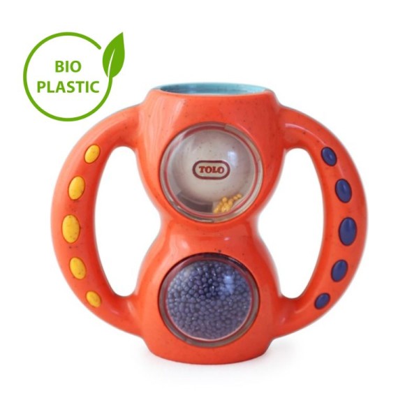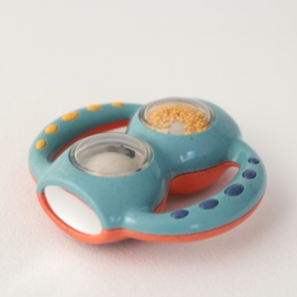 Обърнете дрънкалката с надолу и гледайте как топчетата се търкалят от една страна на друга. Вижте как вълшебните топчета променят цвета си, когато стигнат до другата страна. Дрънкалката е идеална за малки ръчички и подходяща дори като играчка за облекчаване на наболелите венци на вашето бебе.