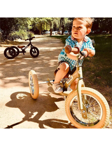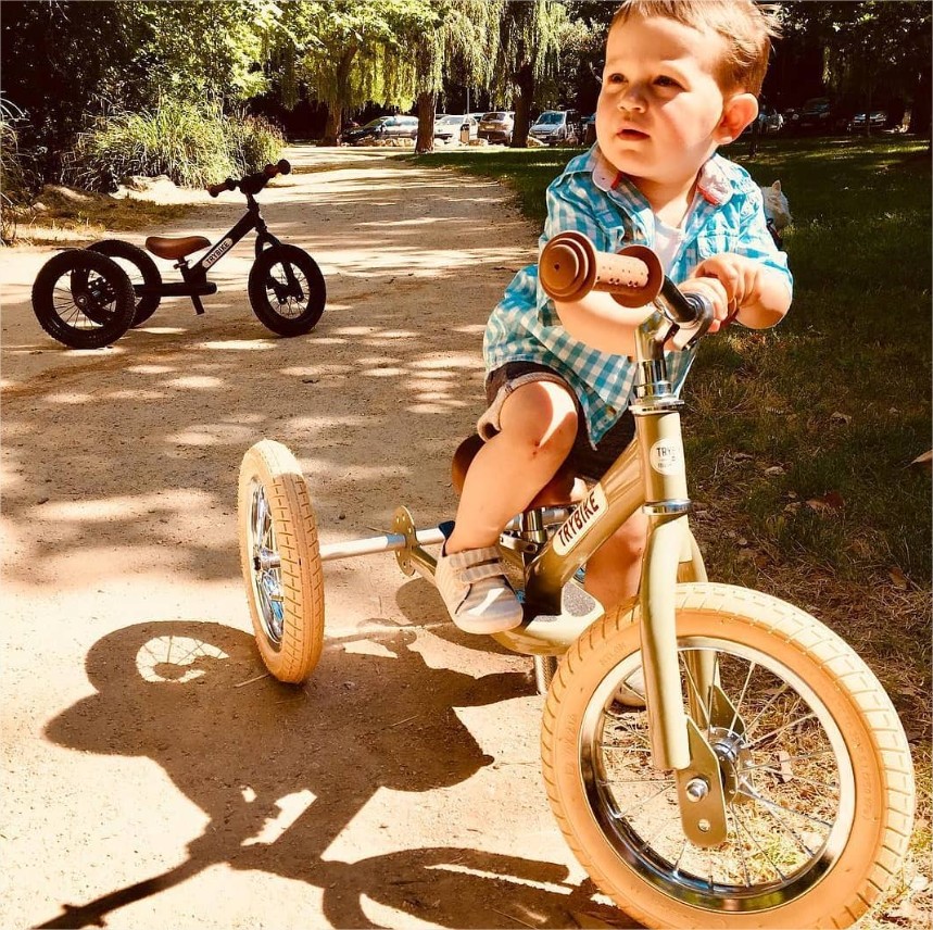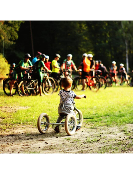 Тъй като за повечето малки деца е трудно да се качват и да контролират велосипед, ние препоръчваме да ги подготвите за това с  триколка и едва когато свикнат с нея, просто да я превърнете във велосипед без педали.