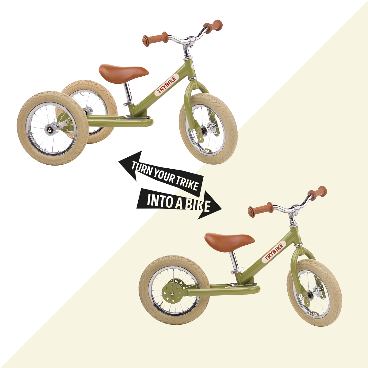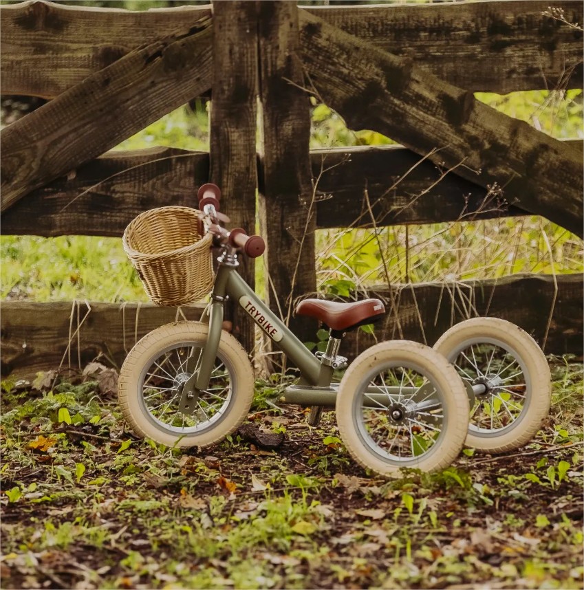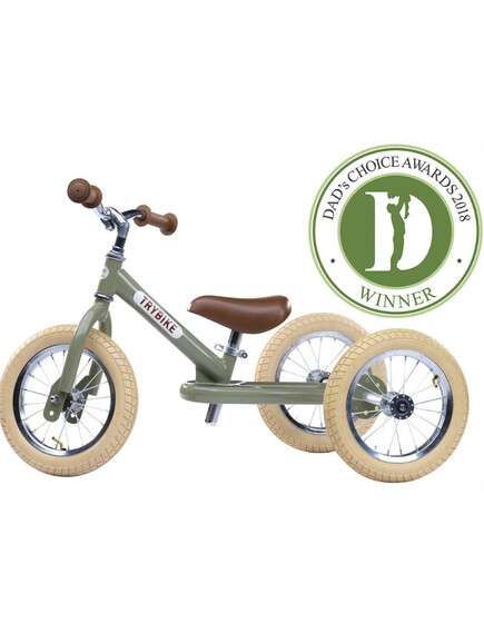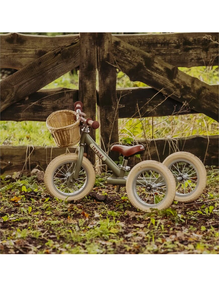 Trybike Винтидж Триколка, която се превръща в колело за баланс - цвят Матово Зелено