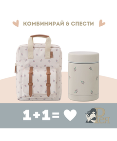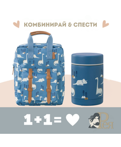 Отново на училище или градина ... с този красив комплект, който подготвихме специално за Вас от Fresk. Той включва: ученическа раница с термо съд в същия дизайн! А ето и повече за продуктите: 1.  Красива и функционална раница  с размери 28x21cм с отделения, така че...