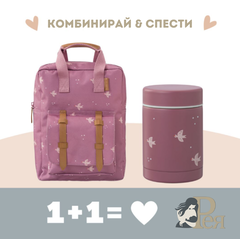 Отново на училище или градина ... с този красив комплект, който подготвихме специално за Вас от Fresk. Той включва: ученическа раница с термо съд в същия дизайн! А ето и повече за продуктите: 1.  Красива и функционална раница  с размери 28x21cм с отделения, така че...