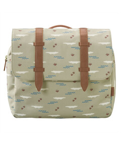 Раница за предучилищна или училище, с класически вид на "пощенска чанта" и много специален дизайн, който децата ще харесат!  Идеална е за  детска градина ,  ясла и разбира се за разходка!   Изработена от  рециклирани пластмасови бутилки, за да може  със...