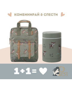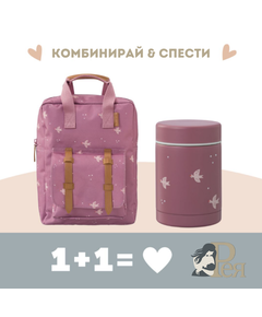 Отново на училище или градина ... с този красив комплект, който подготвихме специално за Вас от Fresk. Той включва: ученическа раница с термо съд в същия дизайн! А ето и повече за продуктите: 1.  Красива и функционална раница  с размери 28x21cм с отделения, така че...