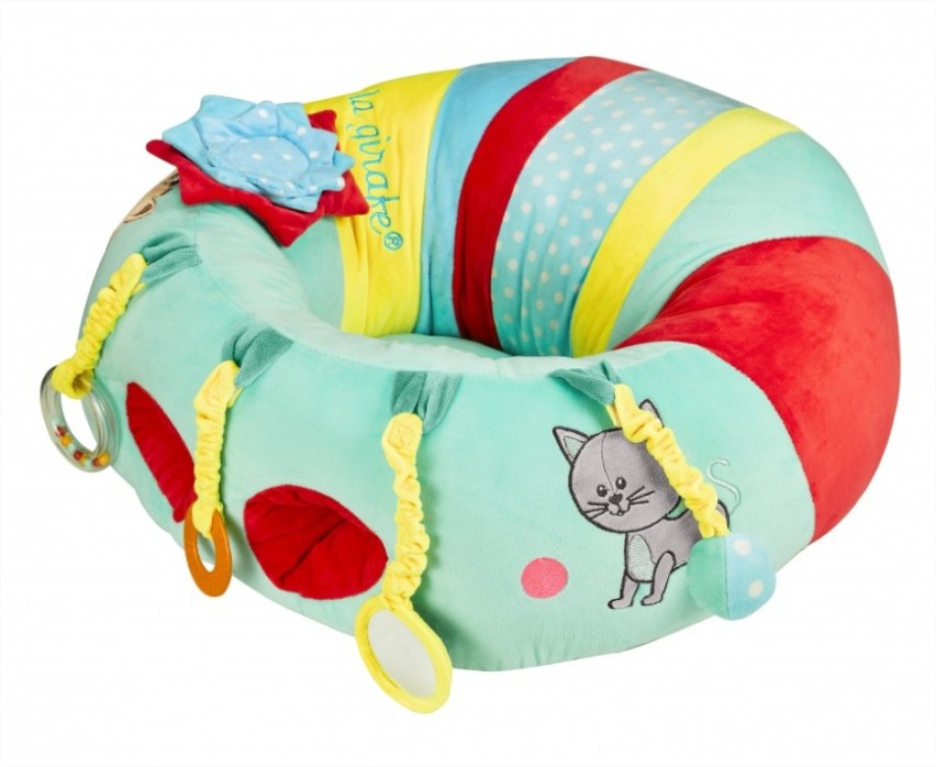 Играта с меката възглавничка, тип фотьйол, в което детето се чувства изключително удобно и му дава възможност да комбинира различни видове активности с прикачащите се играчки.