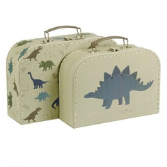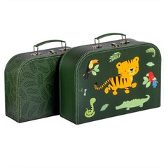Прекрасен комплект от два куфара за декорация, игра или съхранение!   Куфарите се предлагат в два различни размера и са изработени от здрав картон с полиестерни шевове. И големият, и малкият куфар са с цветна метална дръжка и закопчалка, която ще пази всички...