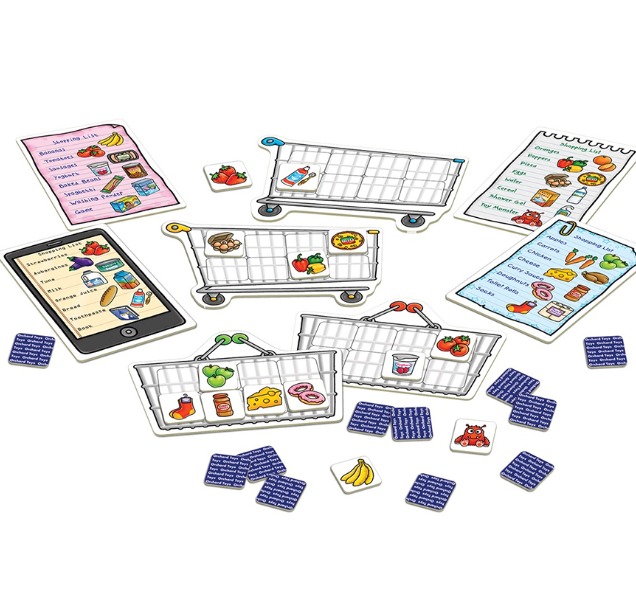 Включва колички, кошници, 32 карти с продукти и списъци.