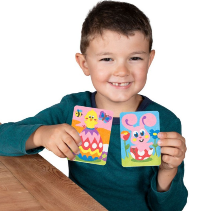 Няма нужда от ножици и лепило! Просто отлепете и оцветете с цветния пясък.