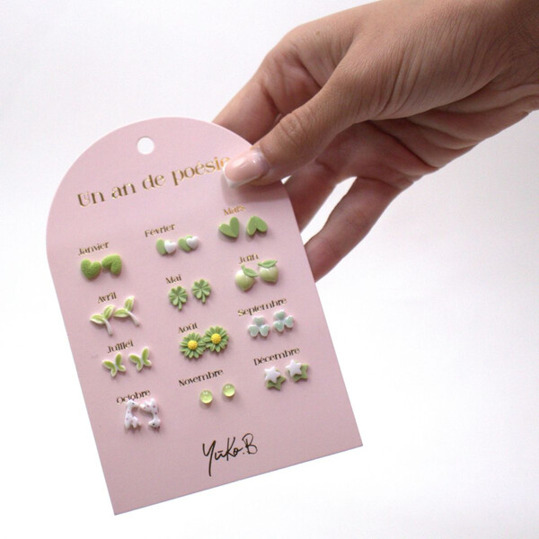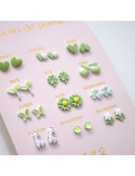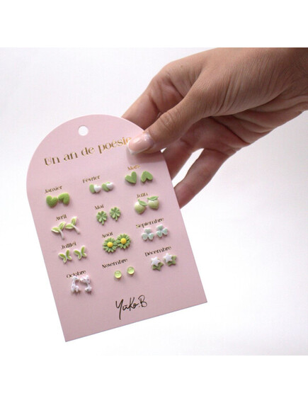 Можете да носите различен дизайн всеки месец, като коригирате обеците си според настроението и стила си. Обеците не съдържат никел. Закопчалките са изработени от неръждаема стомана , осигуряваща отлична издръжливост, а декоративните елементи са керамични, добавяйки нотка елегантност към всеки чифт.