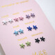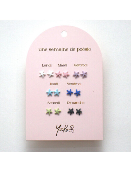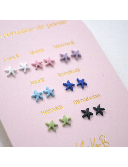Красив комплект със 7 чифта обеци. Всеки чифт е с различен цвят във формата на морски звезди, внасящи нежност и романтика в ежедневието ви.