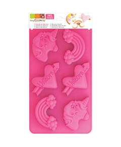 Любимата тема за детето са еднорозите? Направете мъфини и кексчета или бисквитки с приказното създание и впечатлете всички! Висококачествена  гъвкава, незалепваща  силиконова  форма от ScrapCooking® с  6 форми:   2 глави на еднорог, 2 дъги и 2 сърца....
