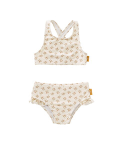 С банския от 2 части с  UV50 защита  на марка Fresk, детето ще бъде защитено от вредните слънчеви лъчи! Сладките къдрички  на долнището и кръстосаните презрамки  го правят да изглежда и  елегантен . Благодарение на  UV50 защитата предпазва...