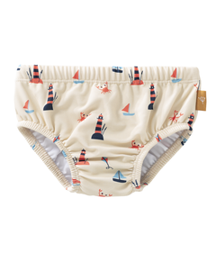 Сладкият памперс бански с UV защита в типичния стил на марка Fresk! С него плуването и ходенето на плаж става по - спокойно и леко.  Благодарение на  UV50 защитата , детето Ви е  защитено от слънцето , а материалът във вътрешността е  мек и абсорбиращ....