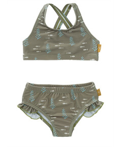 С банския от 2 части с  UV50 защита  на марка Fresk, детето ще бъде защитено от вредните слънчеви лъчи! Сладките къдрички  на долнището и кръстосаните презрамки  го правят да изглежда и  елегантен . Благодарение на  UV50 защитата предпазва  кожата...