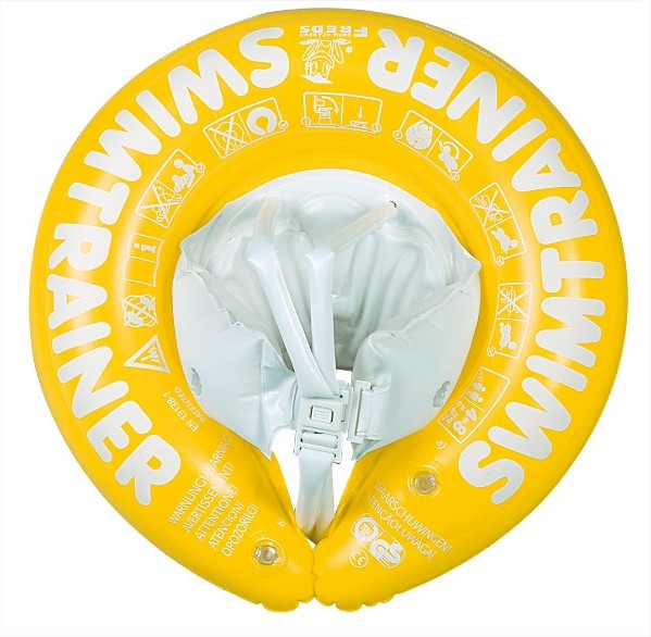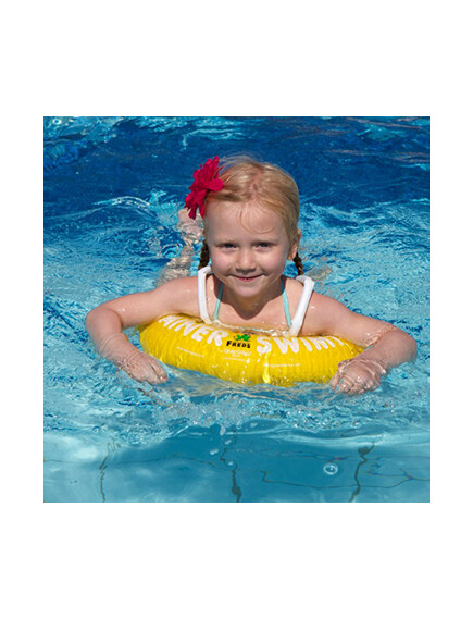 Жълтият пояс от серията SWIMTRAINER е предназначен за деца на възраст от 4 до 8 години и с тегло от 30 кг до 36 кг. Този пояс осигурява систематичен метод за плавен преход от плуване с помощни средства към плуване без никаква помощ.